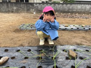 本日は、さくら組がたまねぎの苗植えをしました。