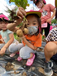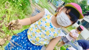 本日はひまわり組(年長児クラス)がじゃがいもを収穫しました。