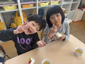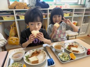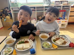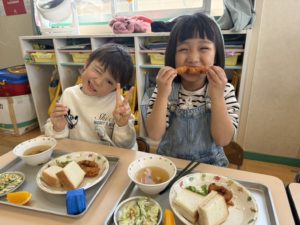残り少ない保育園での給食も楽しんで食べてくれたら嬉しいです 😌