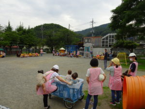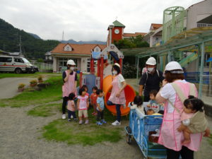 本日は園舎東側のアパートの火災で園舎に延焼の恐れがあると想定した訓練でした。