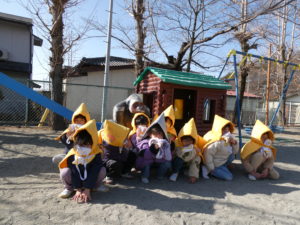 みんな防災頭巾も早く被れるようになって素早く避難する事が出来ました!