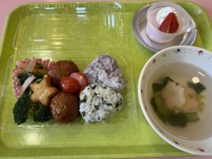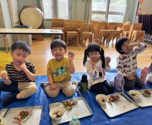 雨が降っていたので園庭でのお花見はできませんでしたが、室内でお花見給食を味わいました🌸