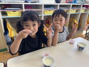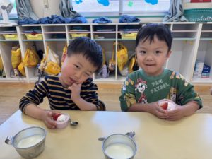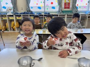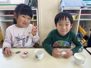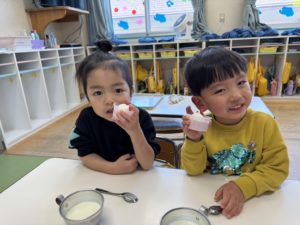 お友だちと並んで食べる給食はとっても美味しかったね🍀